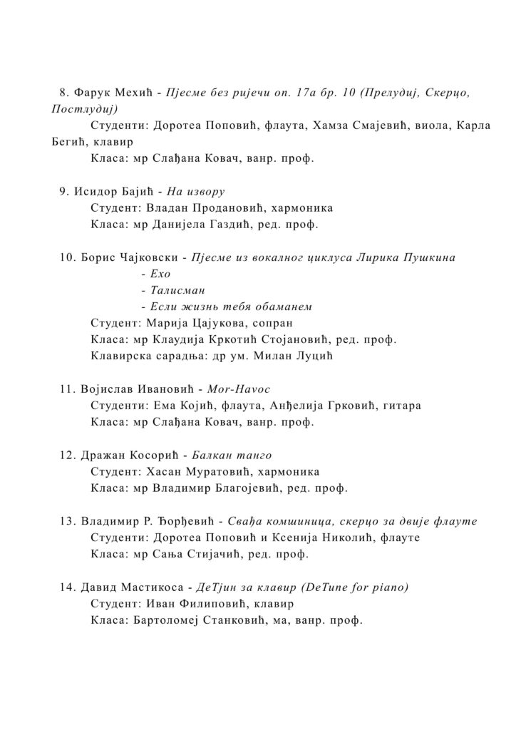 I STUDENATA MUZIČКE AКADEMIJE UNIVERZITETA U ISTOČNOM SARAJEVU