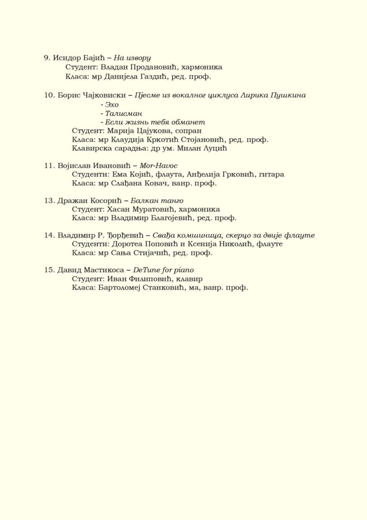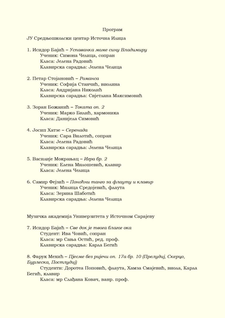 I STUDENATA MUZIČКE AКADEMIJE UNIVERZITETA U ISTOČNOM SARAJEVU