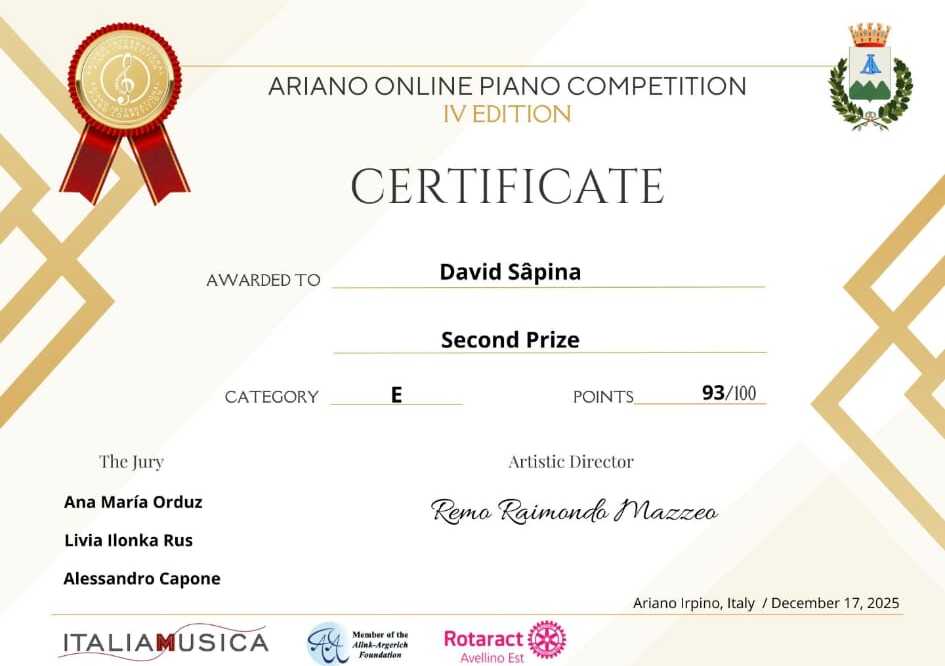 SMJER ZA КLAVIR – NAGRADA NA TAКMIČENJU U ITALIJI