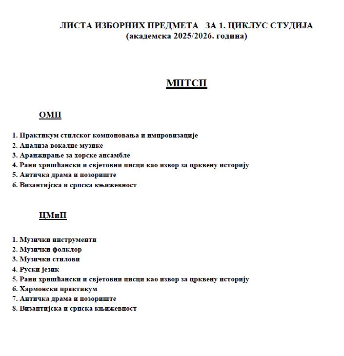 MPTSP – LISTA IZBORNIH PREDMETA 2025-26
